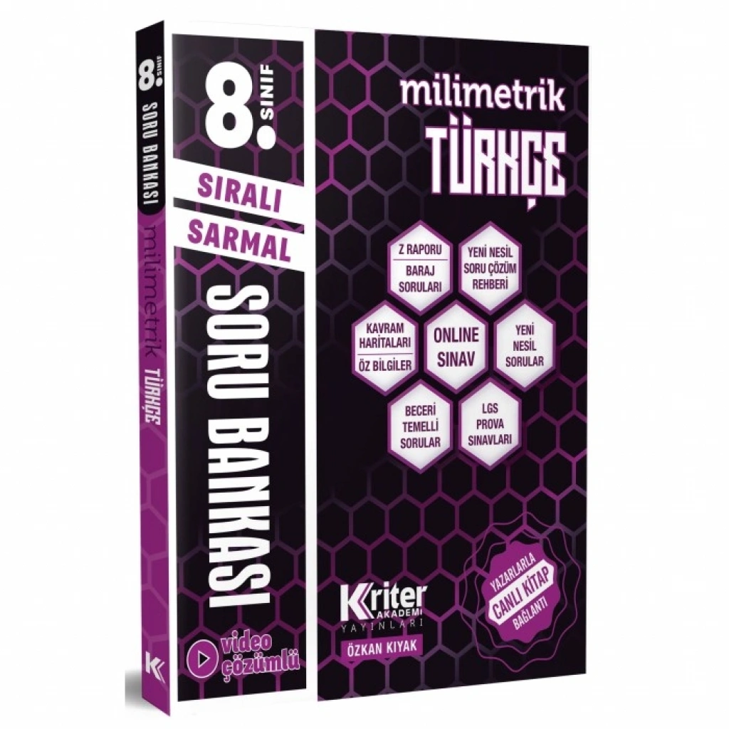 "En ince ayrıntısına kadar..." mottosuyla hazırlanan MİLİMETRİK serisinin Türkçe kitabı. Sıralı Sarmal Soru Bankası, alanında birçok ilki ve yeniliği barındırıyor. Yazarlarla canlı bağlantının kurulduğu CANLI KİTAP uygulaması, ücretsiz ONLINE DENEME SINAVI, Türkiye’de ilk ve tek YENİ NESİL SORU ÇÖZÜM REHBERİ, hiçbir kitapta bulunmayan Z RAPORU ve her üniteye ait koparılabilir kavram haritaları BİR BAKIŞTA ve en önemlisi kurgusu ile örneklerinden çok farklı...
